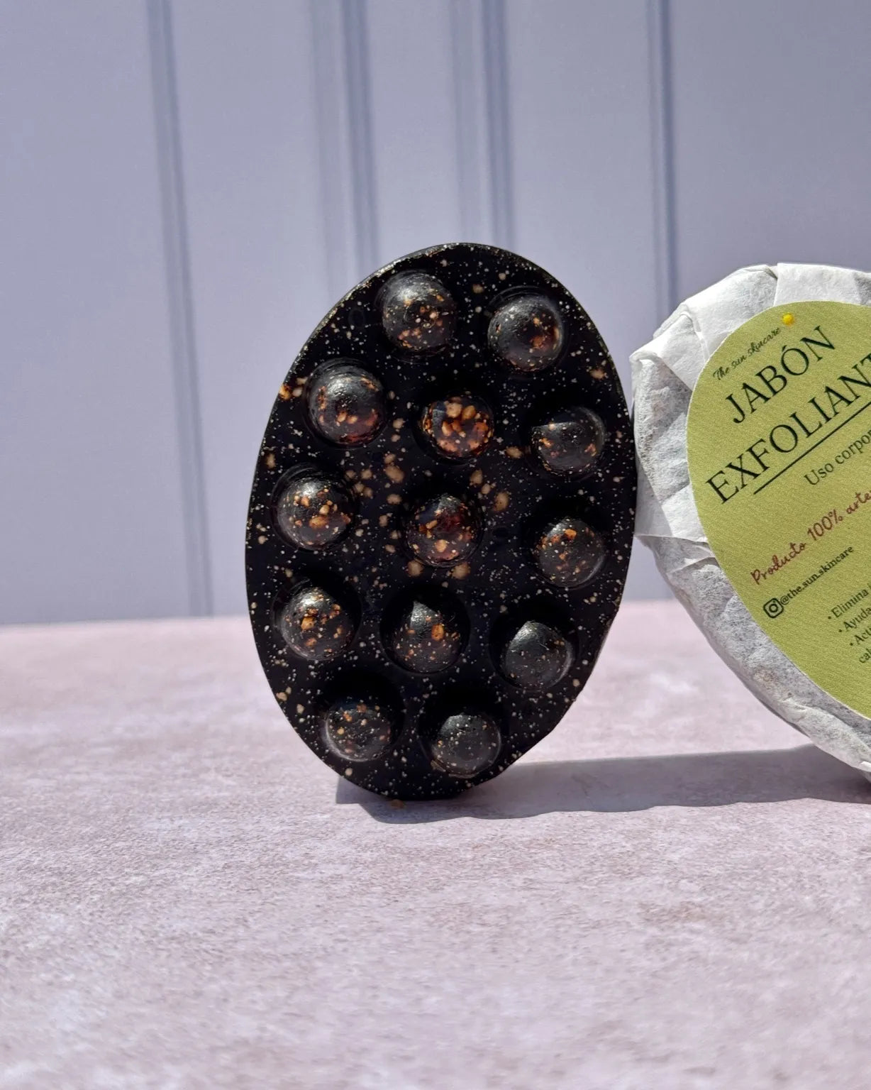 Cuida tu piel de manera natural con nuestro jabón exfoliante de café, ideal para una exfoliación efectiva con beneficios reafirmantes. ¡Dale a tu piel el cuidado que se merece!