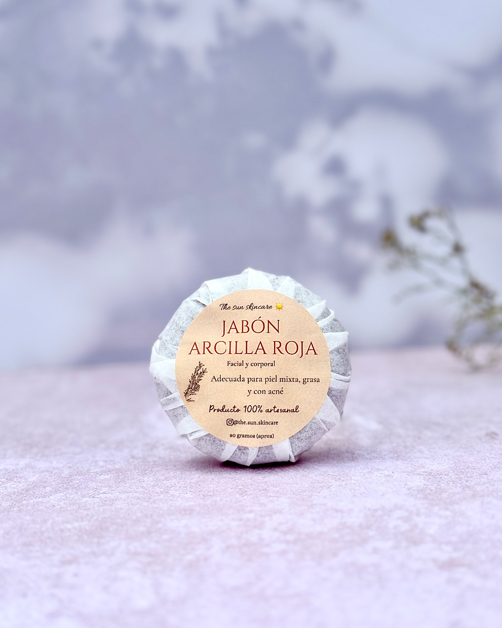 Descubre los beneficios de nuestro jabón de arcilla roja, ideal para el cuidado facial y corporal. Especialmente formulado para piel mixta, grasa y con acné.