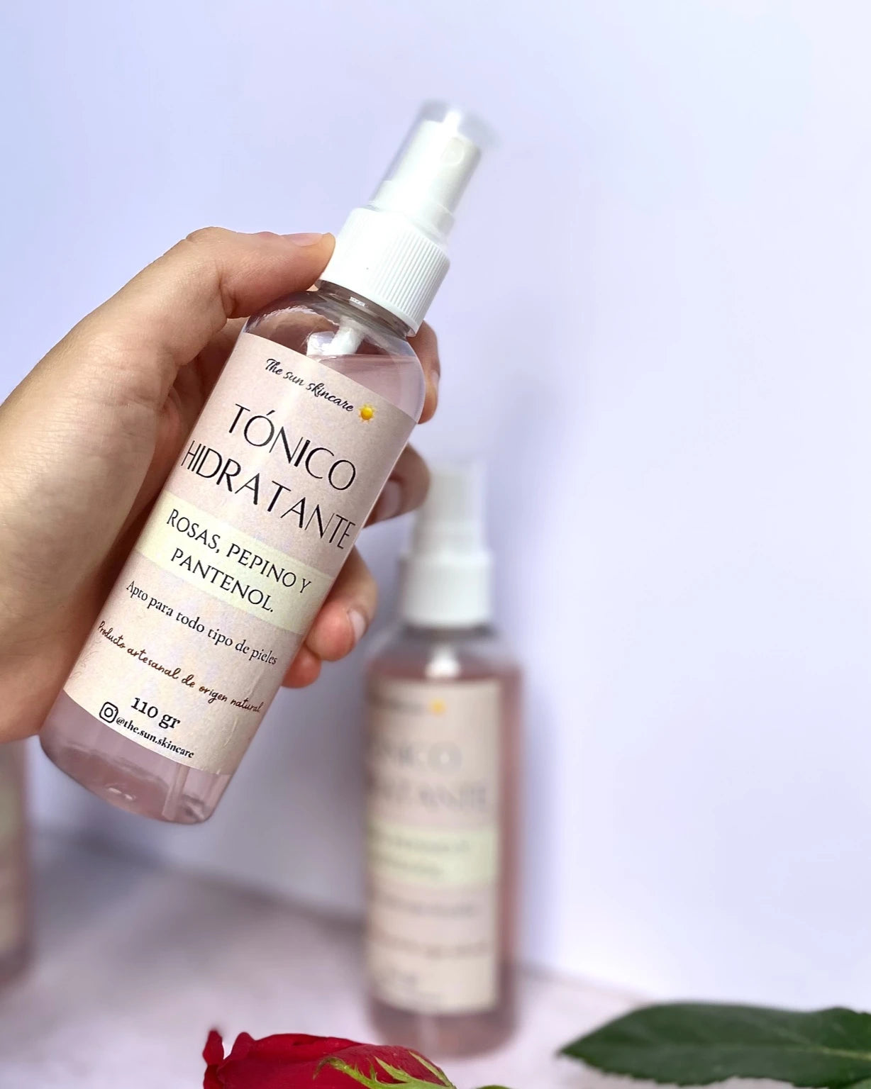 Nuestro tonico hidratante es una mezcla exquisita de rosas, aloe vera, pepino y pantenol, ideal para todo tipo de piel.